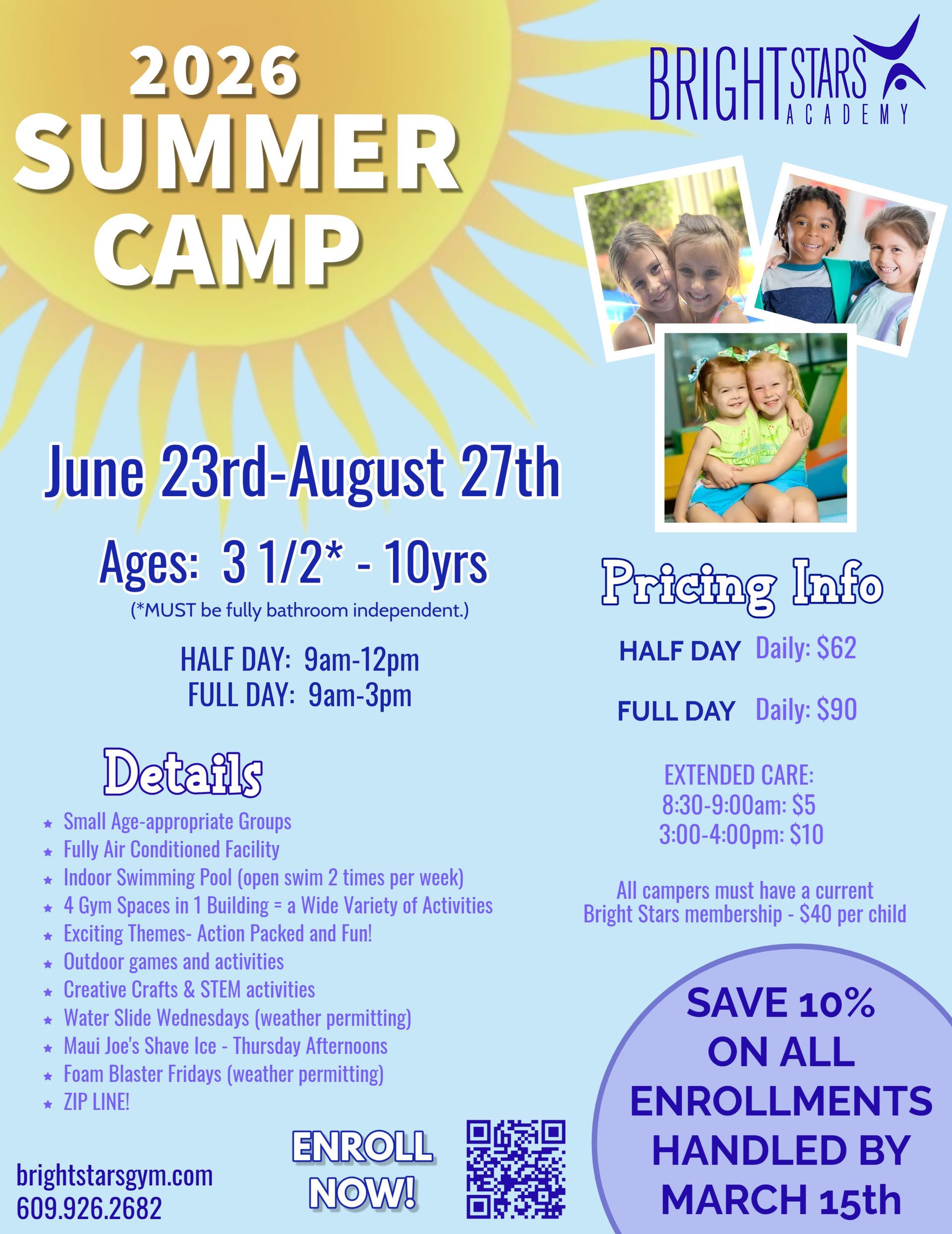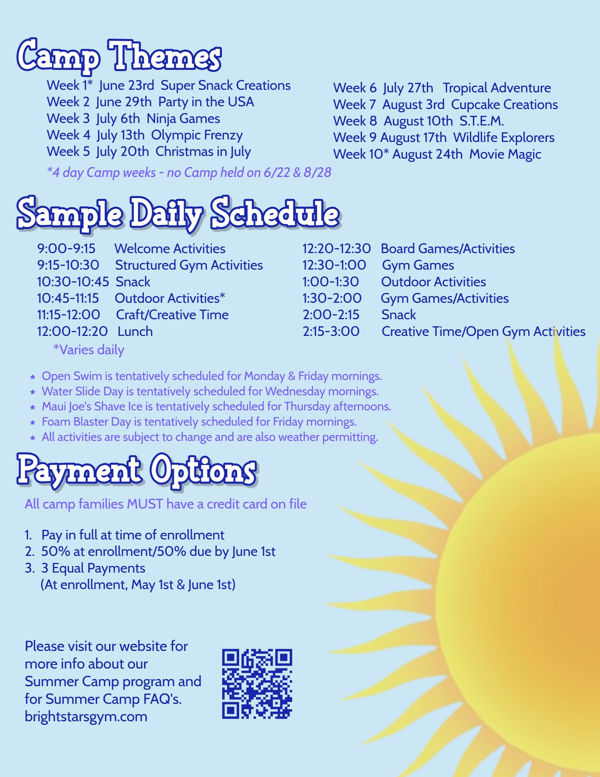 - Half Day campers - please bring a water bottle and 1 healthy snack.