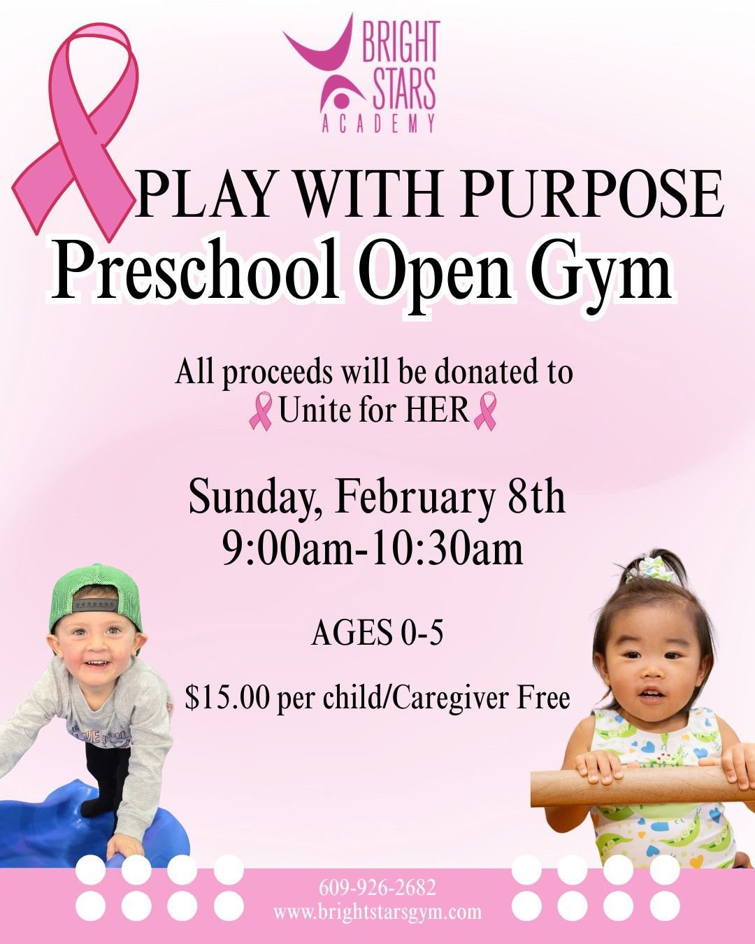 *Please understand that due to the number of very young children attending Preschool Open Gym, we do not allow children older than age Five into the gym as we want our program to be safe for the little ones. Caregivers must be 18 or over. Caregivers must stay with your child