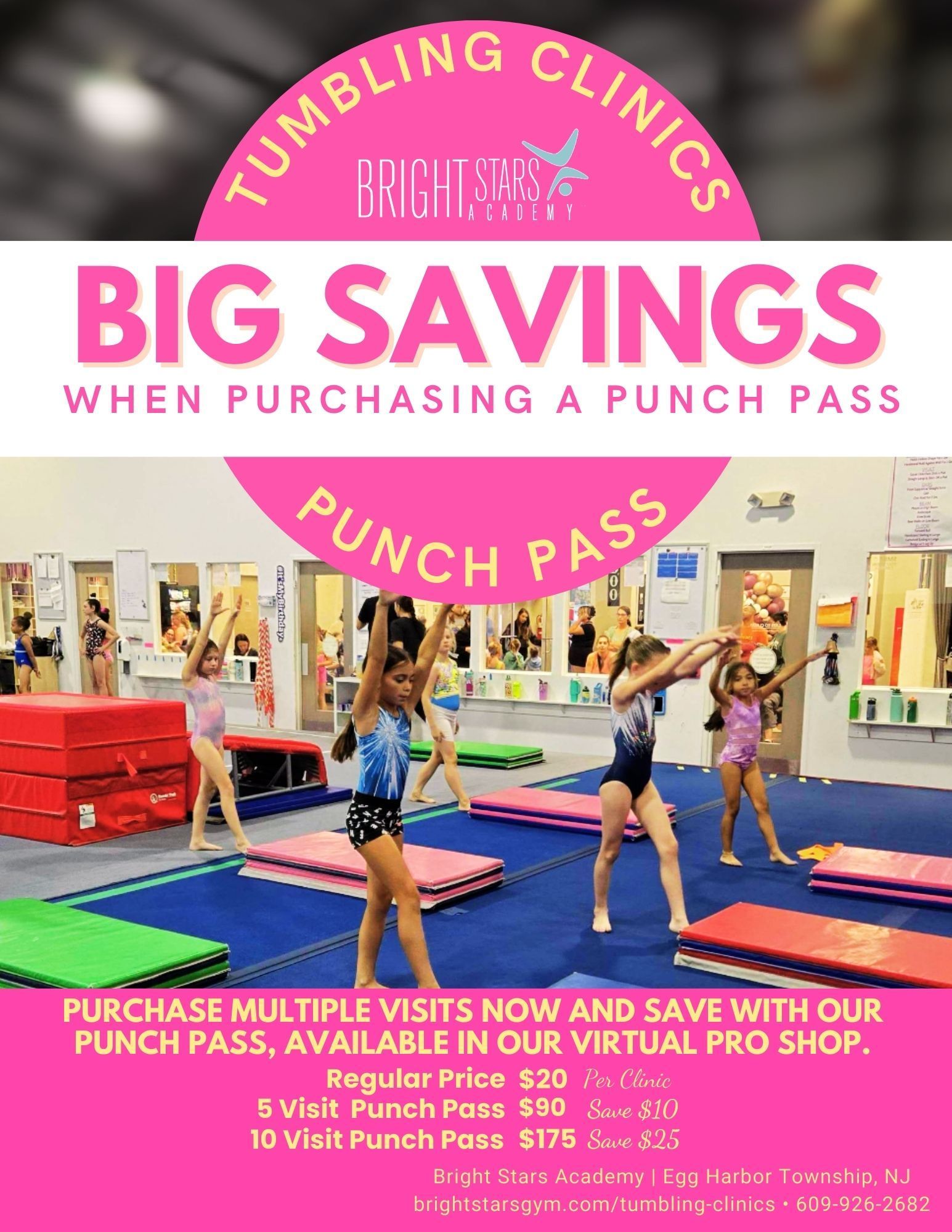 Bright Stars is pleased to offer regular weekly tumbling clinics. Sign up today and work extra on your skills.