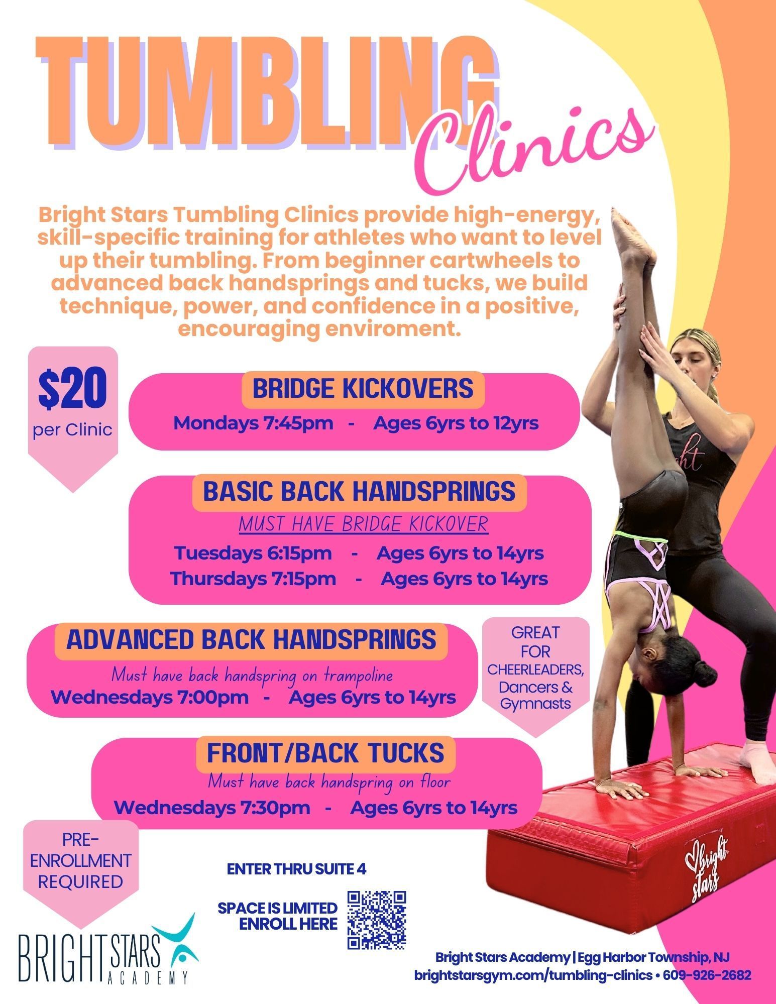 Bright Stars is proud to offer weekly Tumbling Clinics!